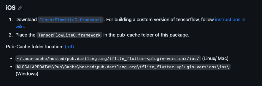 2. 코드블록의 TensorFlowLiteC.framework를 클릭하여 다운받는다.