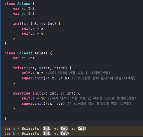 super.init(x: x, y: y) // ⭐️ (필수) 상위의 지정생성자 호출
