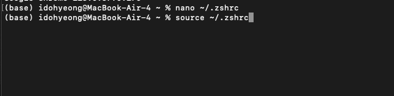 nano ~/.zshrc # zsh 셸을 사용하는 경우