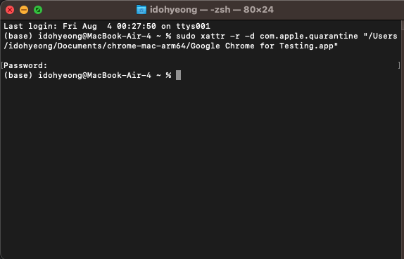 해당 파일이나 폴더에서 macOS의 격리 속성을 제거할 수 있게된다.
